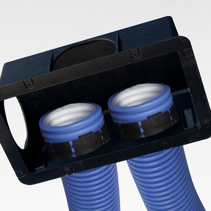 Wo Wànde oder Decken nicht genug dick sind für das Standard-Durchlassgehàuse, wird das Zu-/Abluftgehàuse MINI mit der geringeren Tiefe (lediglich 92mm) eingesetzt, welches nur für Lüftungsrohre mit einem Durchmesser von 75mm geeignet ist. Dafür verfügt es über die Möglichkeit von insgesamt sechs Anschlüssen! Auf einer Seite sind gleichzeitig zwei Anschlüsse möglich, so dass z.B. im Badbereich mehr Luft abgesogen werden kann.Natürlich sind für diese Ausführung spezielle Stutzen und Blinddeckel notwendig, welche nicht mit dem Standard Luftdurchlass kompatibel sind.